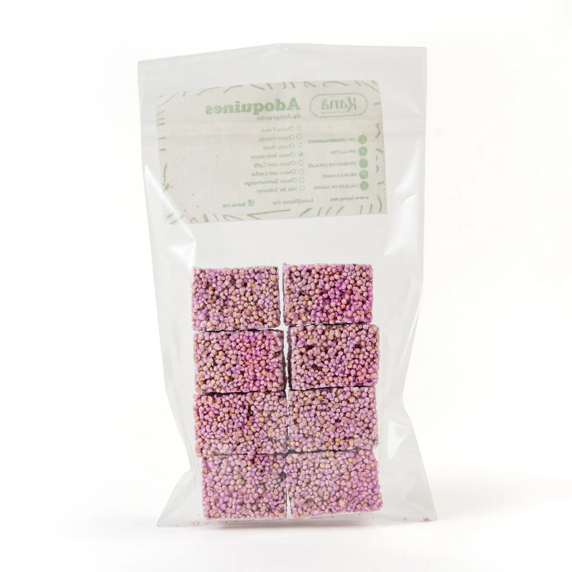 Disfruta de la delicadeza de nuestros Adoquines Choco Arándano, una armoniosa combinación de amaranto reventado con un ligero toque de chocolate y el agridulce sabor del arándano. Esta mezcla clásica ofrece una experiencia sutil y agradable, donde el dulzor del chocolate complementa a la perfección la nota frutal y ligeramente ácida del arándano. Son perfectos para un snack con un sabor familiar y un toque frutal.