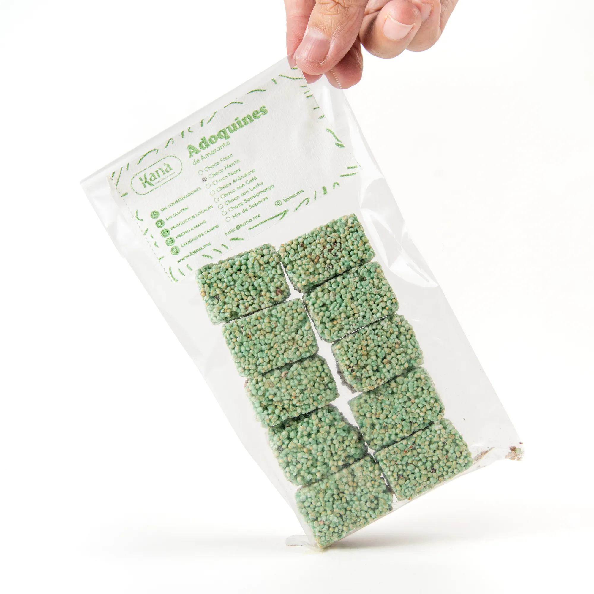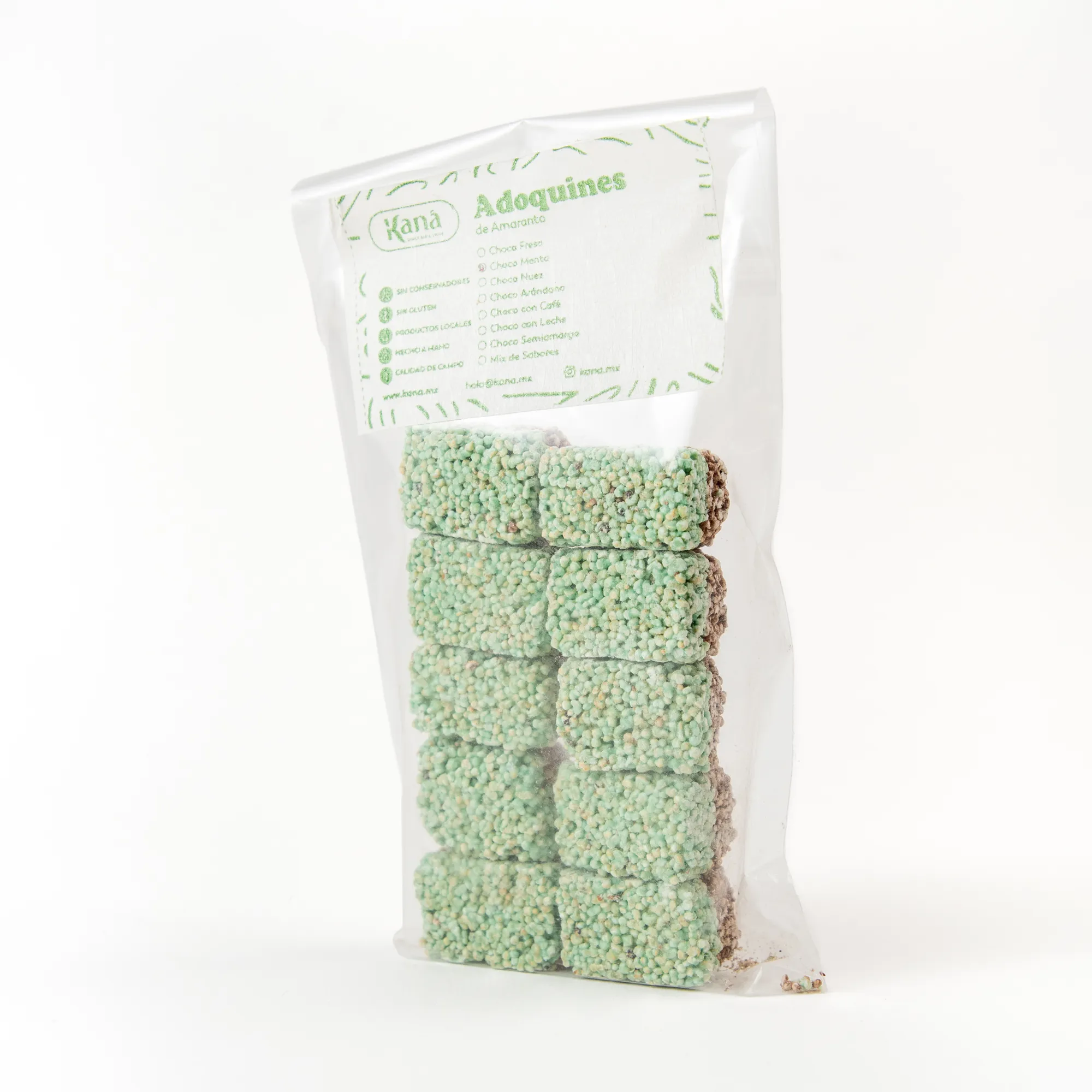 Prueba nuestros Adoquines Choco Menta, una refrescante fusión de amaranto reventado con un ligero toque de chocolate y un vibrante sabor a menta. Esta combinación clásica es perfecta para quienes disfrutan de un contraste equilibrado entre la frescura de la menta y la dulzura suave del chocolate. Cada bocado te ofrece una experiencia limpia y revitalizante, ideal para un snack con un sabor familiar y un toque diferente.