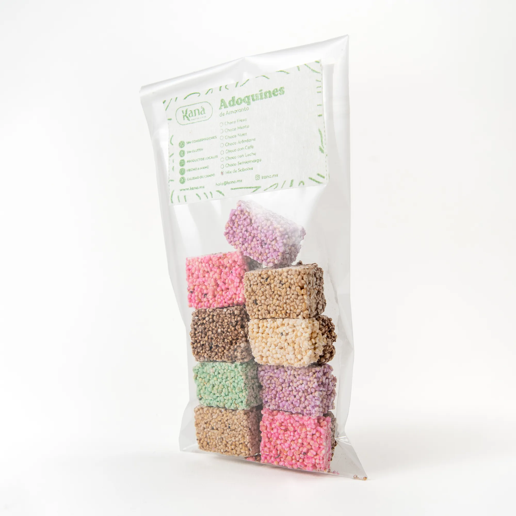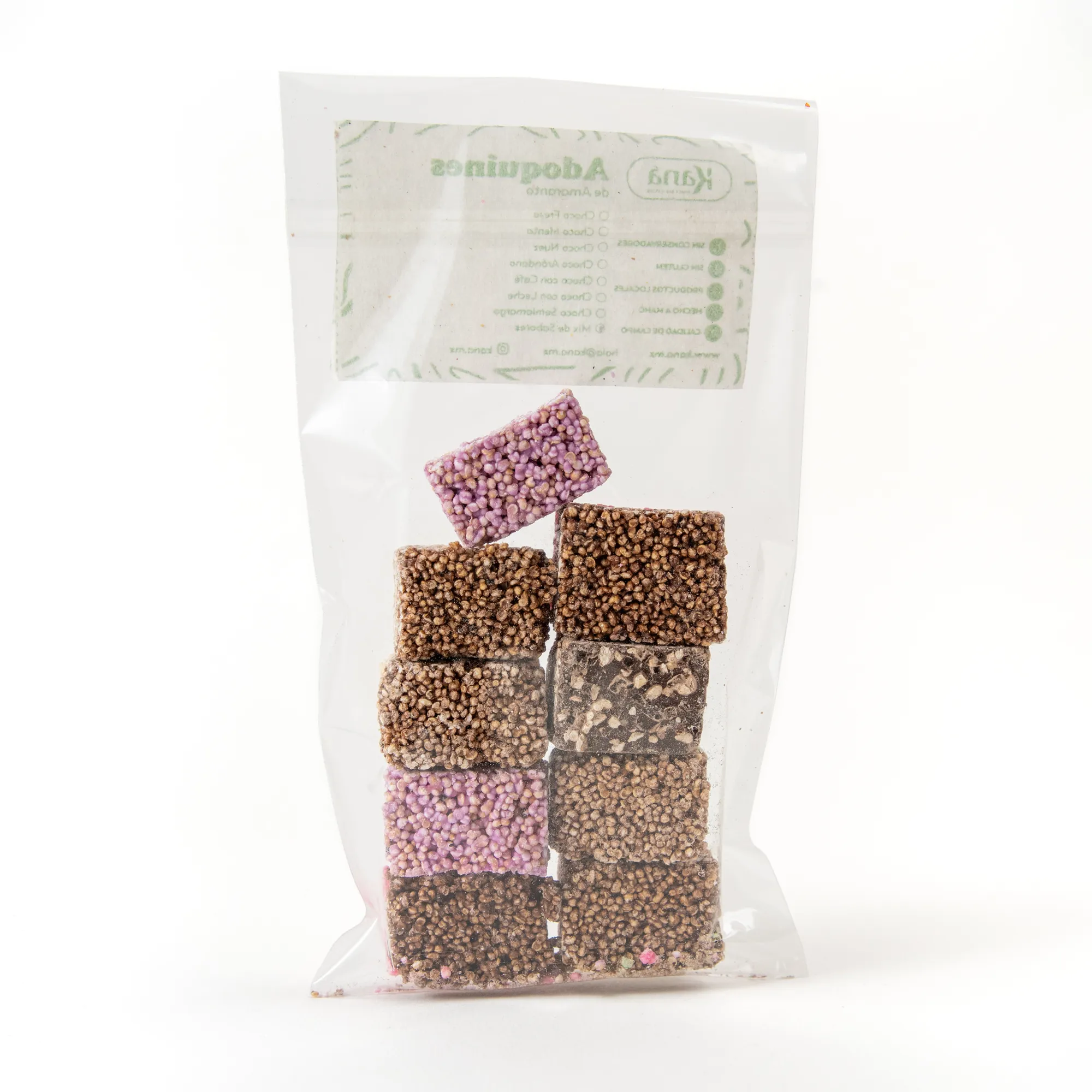 ¿No puedes decidirte? Nuestros Adoquines Mix de Sabores te ofrecen una aventura con amaranto reventado y un ligero toque de chocolate, reuniendo lo mejor de nuestros sabores clásicos. Cada adoquín es una sorpresa, permitiéndote disfrutar de la variedad sin compromiso. Es la opción ideal para quienes buscan un snack con múltiples experiencias de sabores tradicionales en un solo paquete.