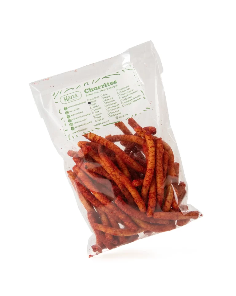 Crujiente y nutritivo chicharrón de amaranto y pasta de soya con sabor a búfalo, un bocado audaz y lleno de carácter. Su mezcla de especias y un toque picante crea una experiencia deliciosa que te envuelve con su sabor único. La combinación del amaranto y la soya aporta una textura ligera y un perfil nutricional saludable, perfecto para quienes disfrutan de un snack con un toque sabroso y picante. Ideal para veganos y vegetarianos, es una opción irresistible y llena de energía.
