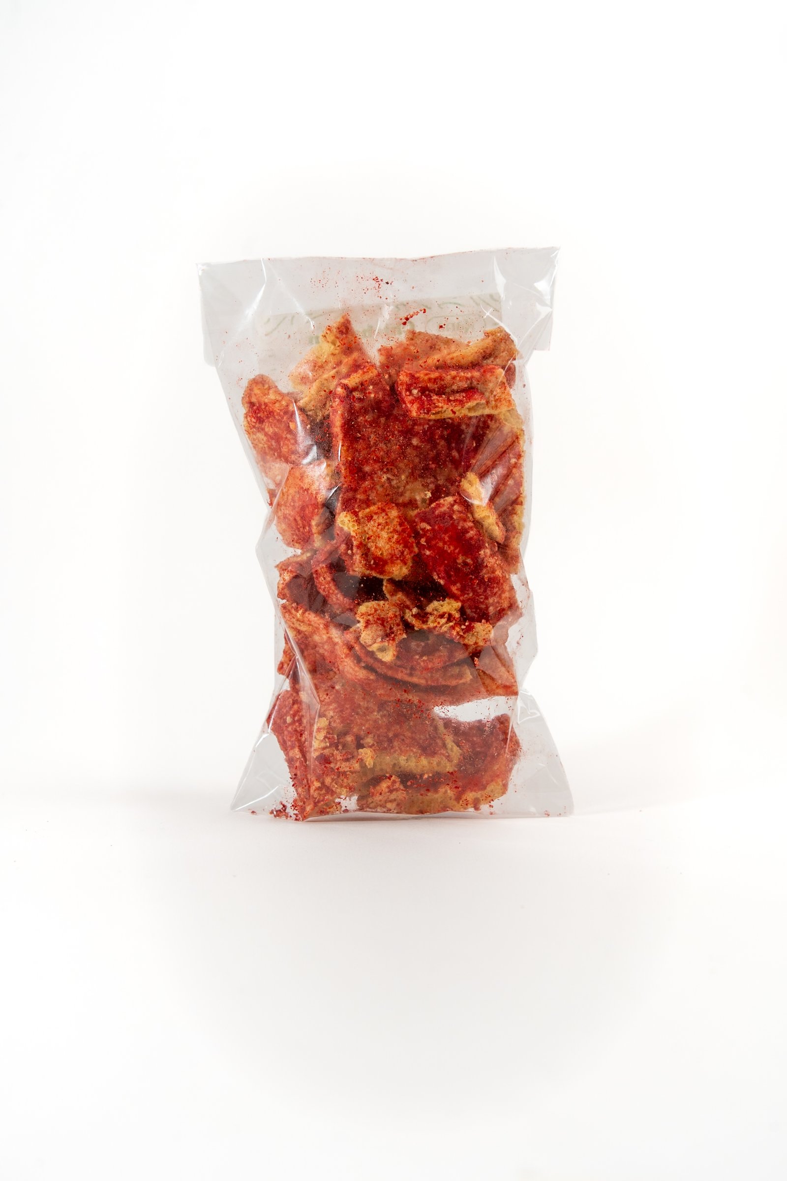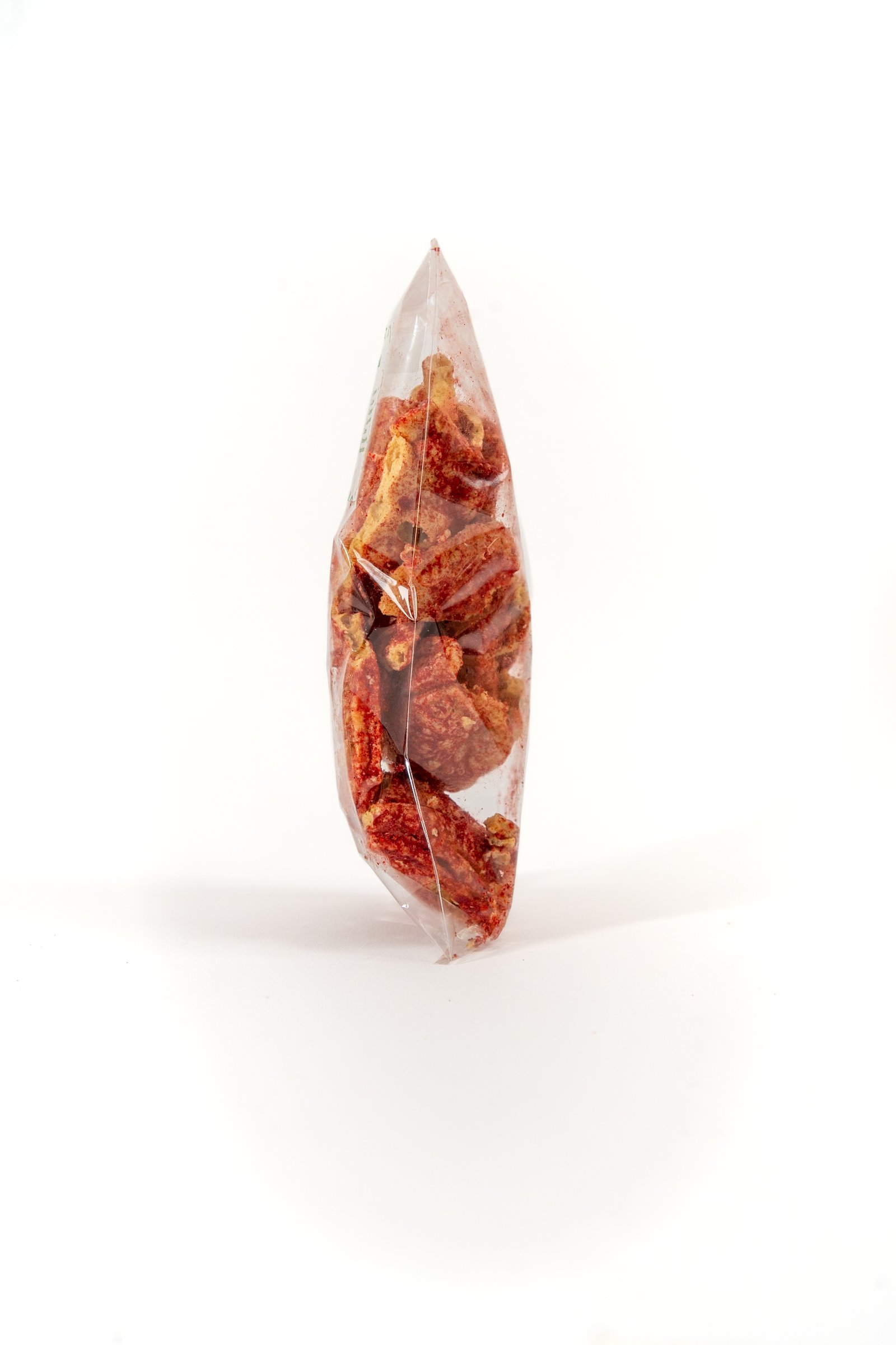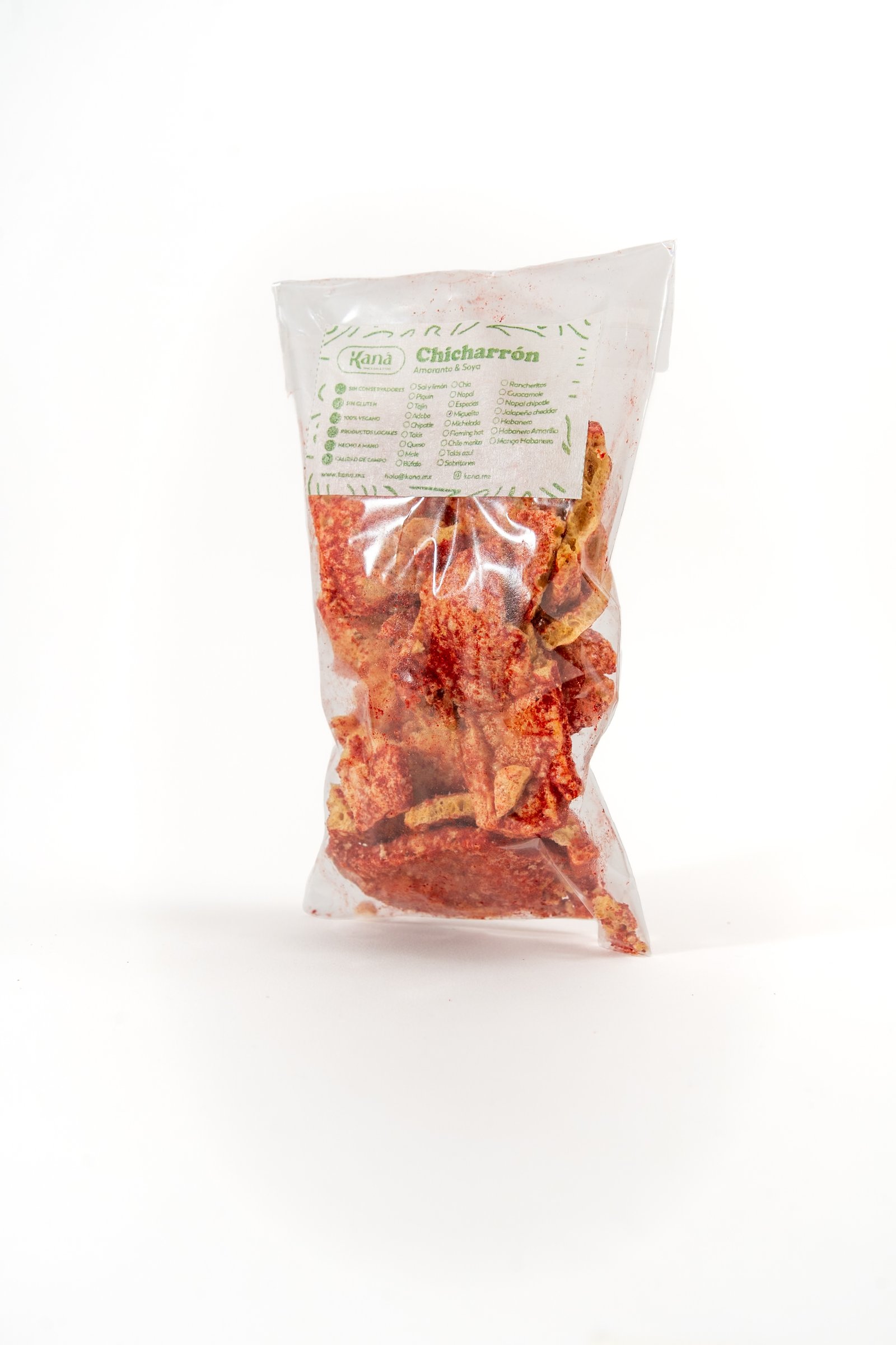 Crujientes y nutritivas tiras fritas de amaranto y soya con sabor a chile, una mezcla picante y especiada que despierta los sentidos. Su sabor audaz combina la intensidad del chile con un toque mantecoso y ahumado, creando una explosión de picante que se suaviza con una cremosidad envolvente. El resultado es una experiencia vibrante y equilibrada, donde el crujir del amaranto y el maíz se encuentra con un sabor profundo y lleno de carácter.