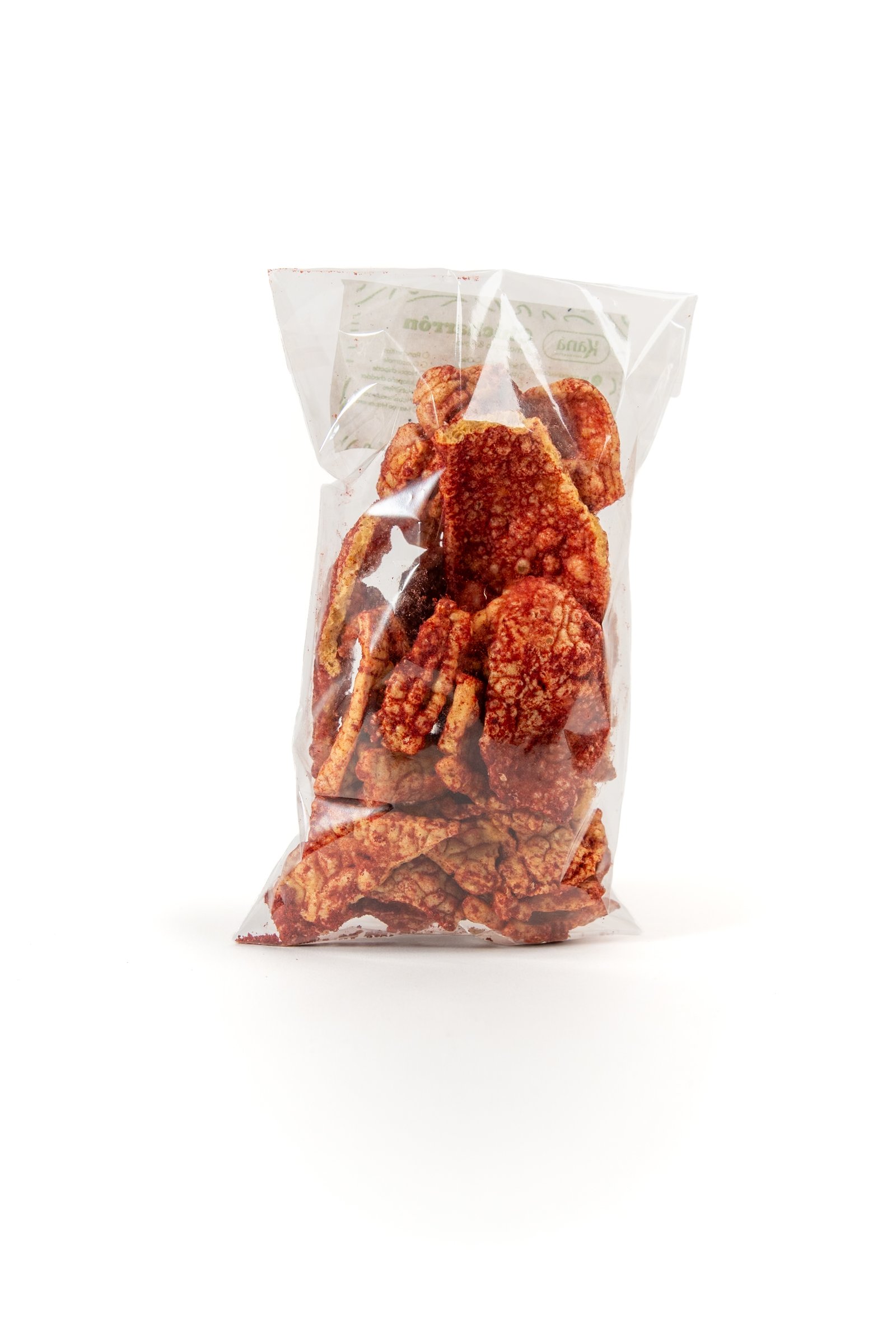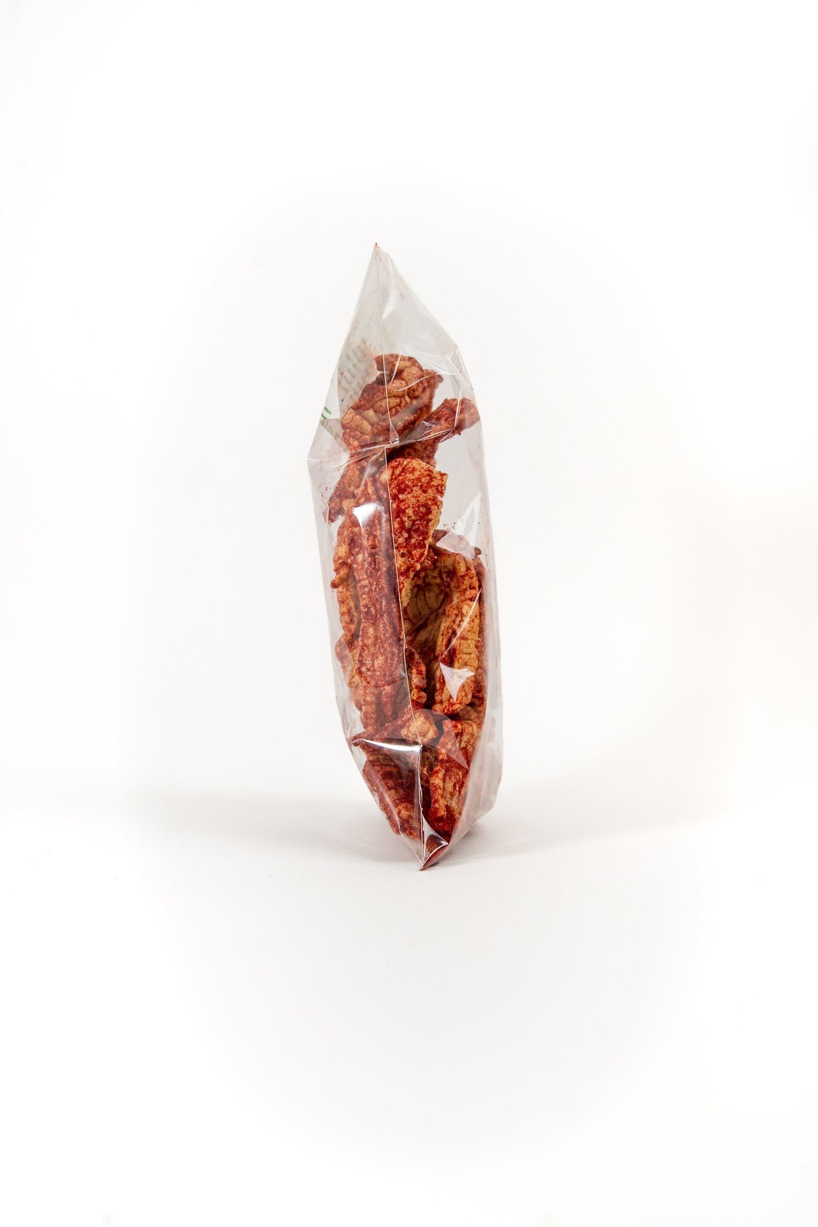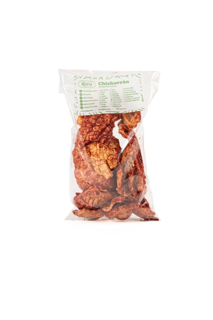 Crujiente y nutritivo chicharrón de amaranto y pasta de soya con sabor Hot Pepper, un snack intensamente picante que te envuelve en una explosión de sabor. El calor del chile se mezcla con la suavidad del amaranto y la proteína vegetal de la soya, creando una experiencia sabrosa y llena de carácter. Apto para veganos y vegetarianos, este chicharrón es ideal para quienes buscan un bocado audaz, con un toque picante que despierta el paladar y mantiene la frescura.