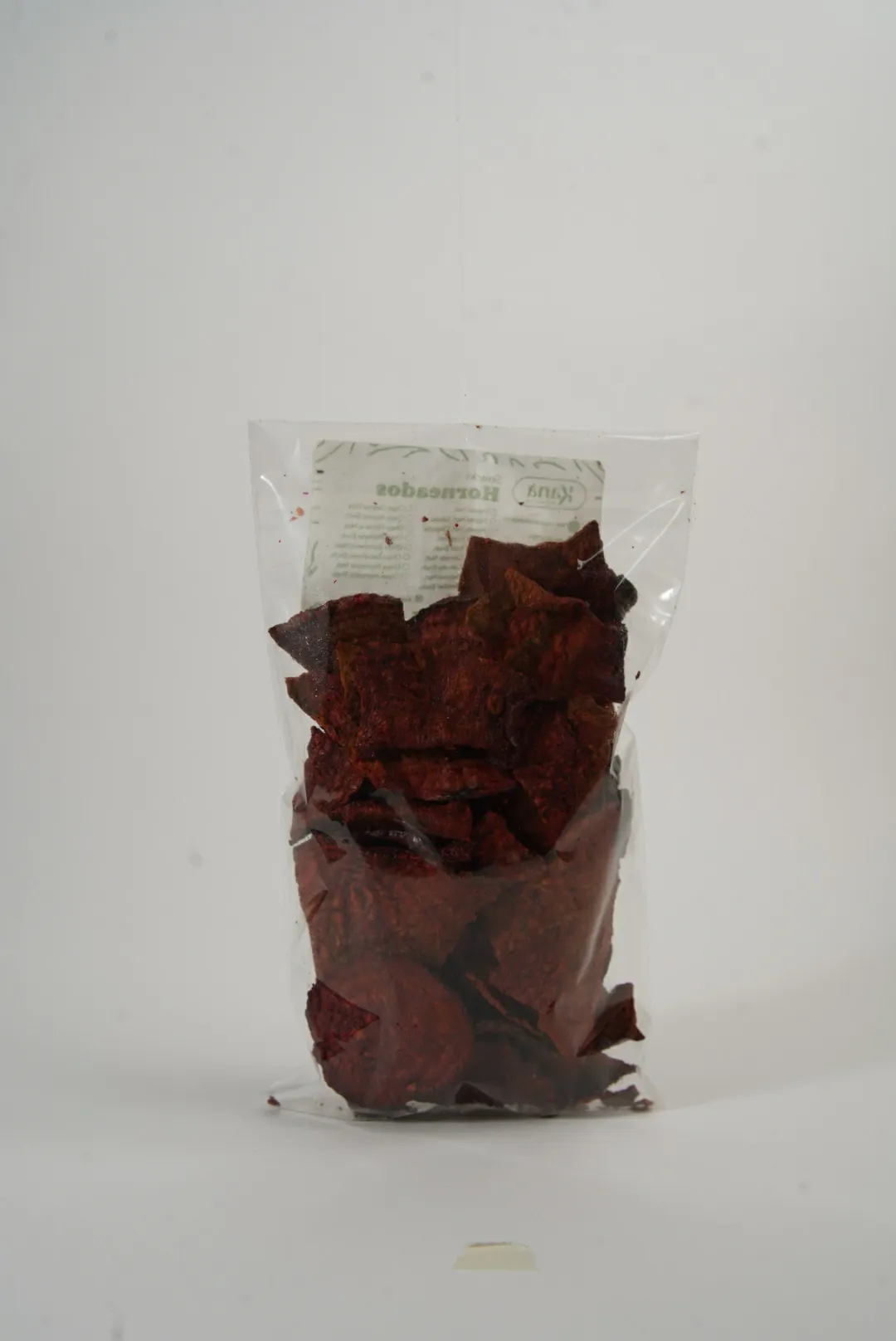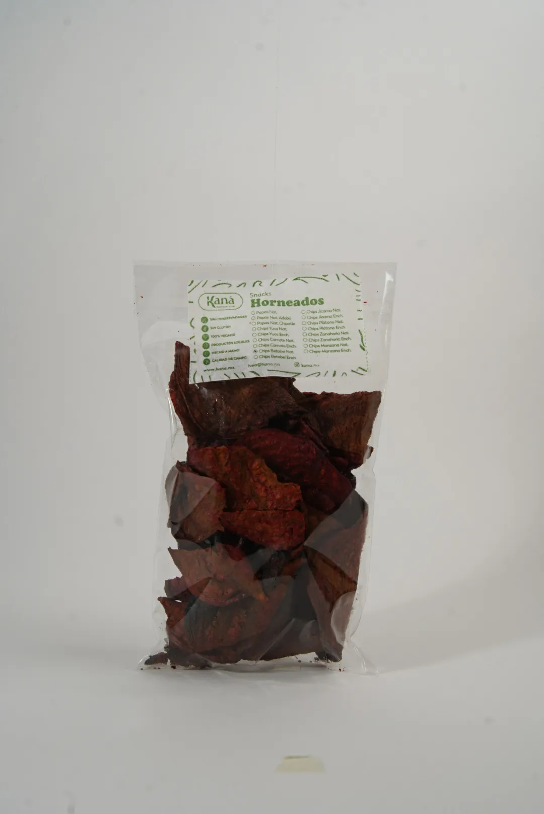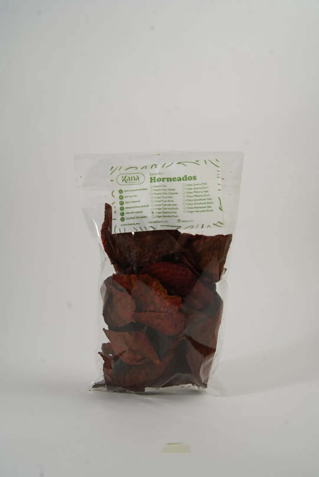 Añade un toque de color y nutrición a tu día con nuestras chips de betabel natural. Cuidadosamente horneadas, estas chips conservan el sabor terroso y ligeramente dulce del betabel, transformándolo en un snack crujiente, vibrante y lleno de nutrientes. Una opción única y deliciosa para tu picoteo.