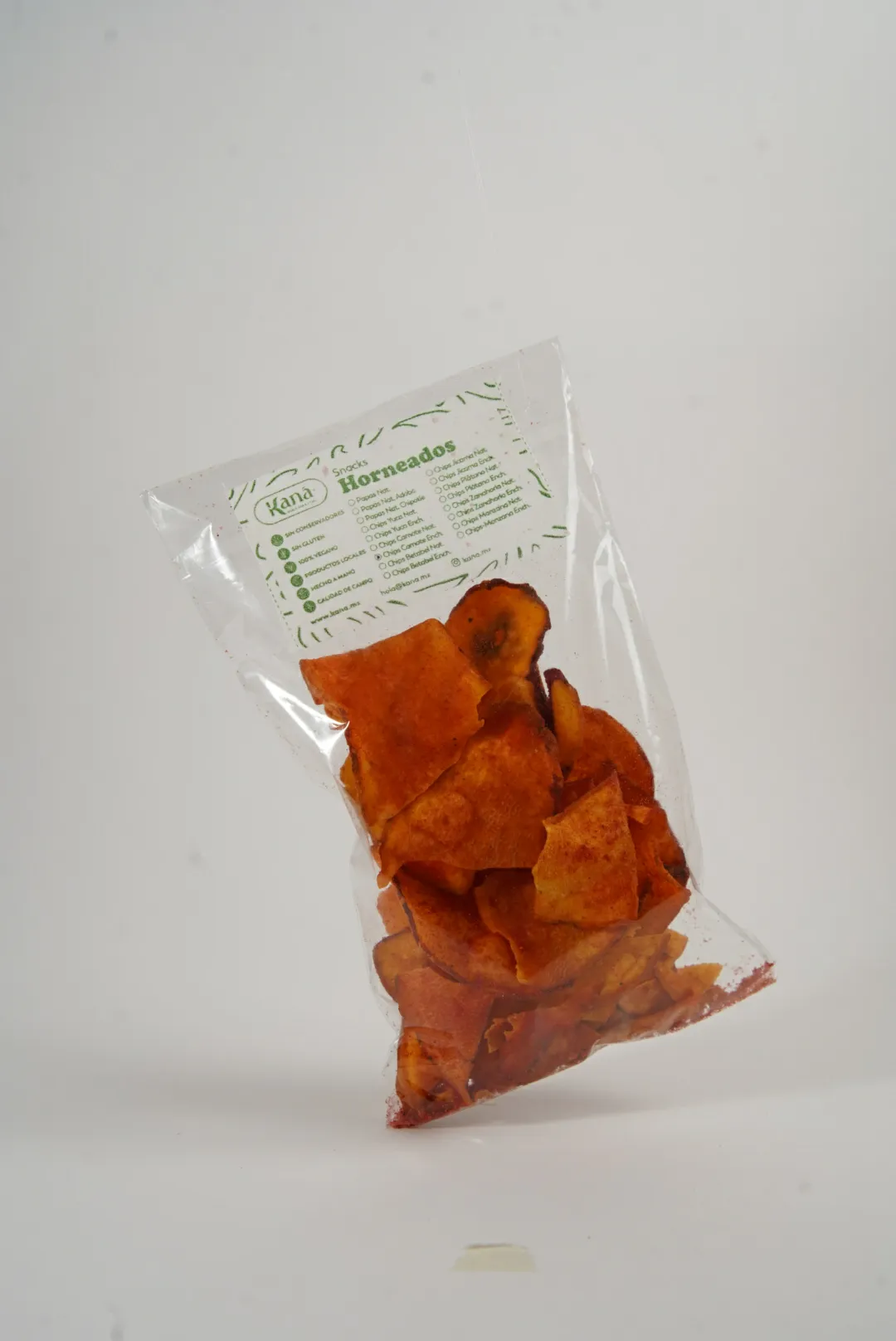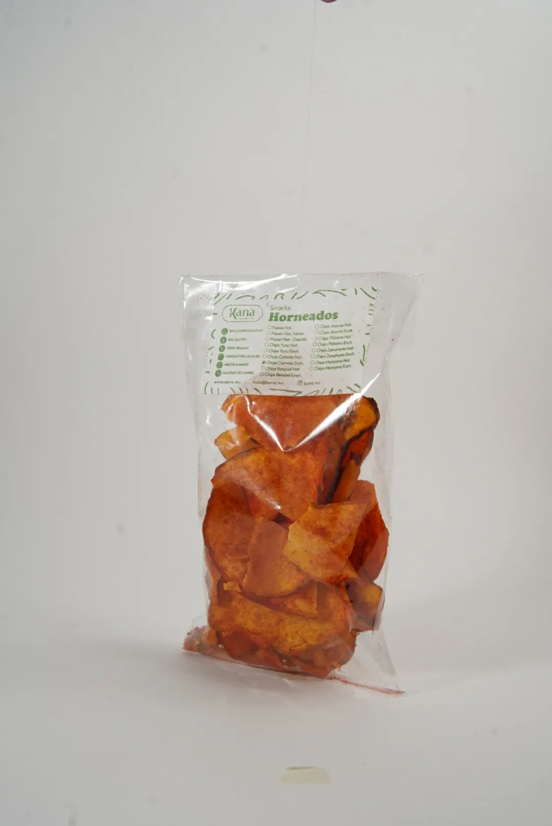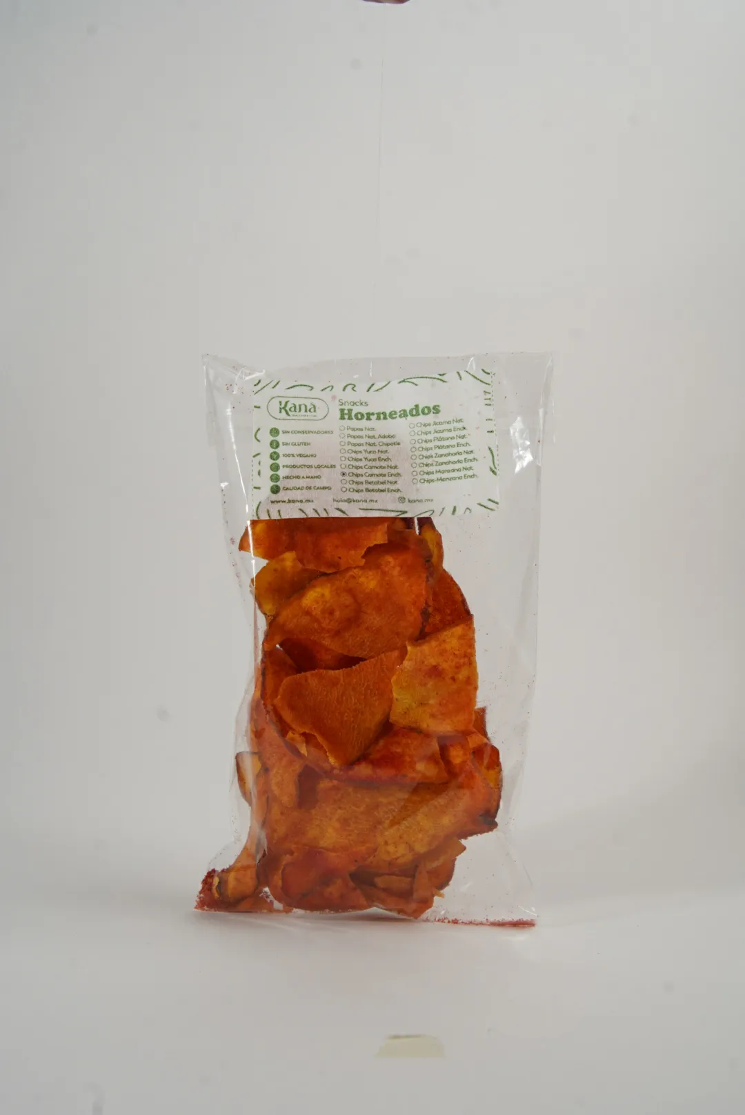 Experimenta una fusión audaz de sabores con nuestras chips de camote enchilado. El dulzor profundo del camote se encuentra con un emocionante y picante toque de chile, creando una explosión de sabor agridulce y adictiva. Es la elección perfecta para quienes buscan un contraste delicioso que eleve su experiencia de snack.