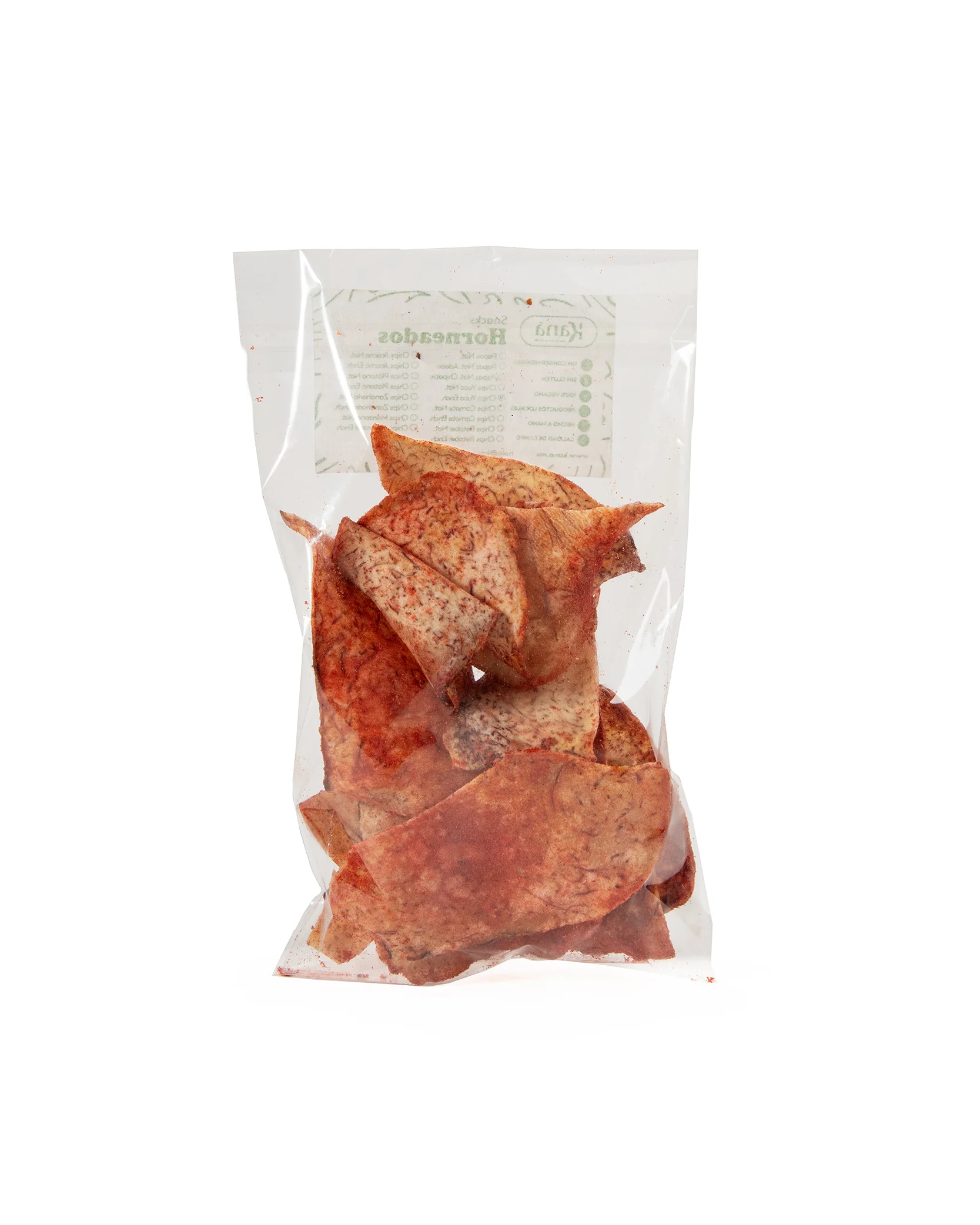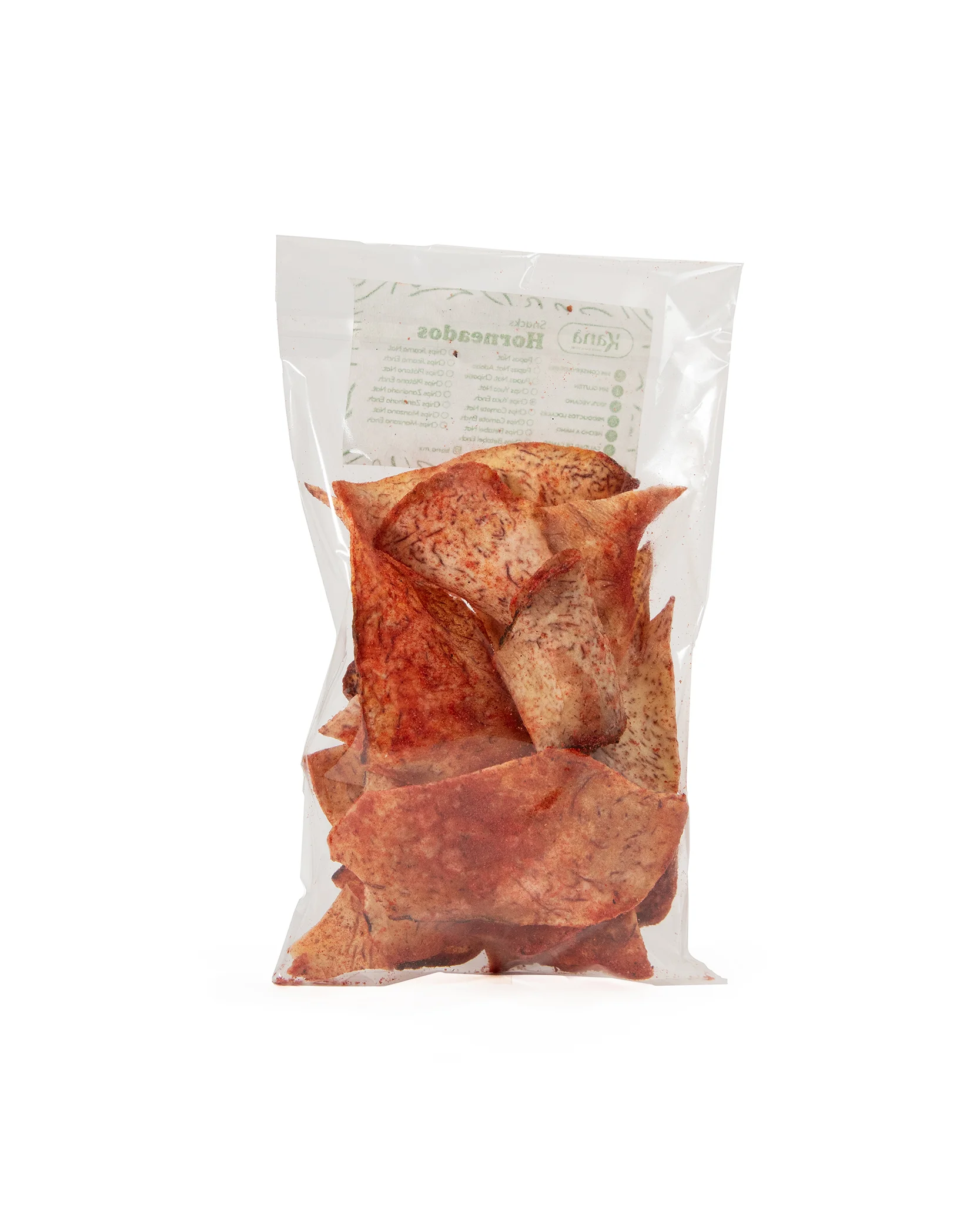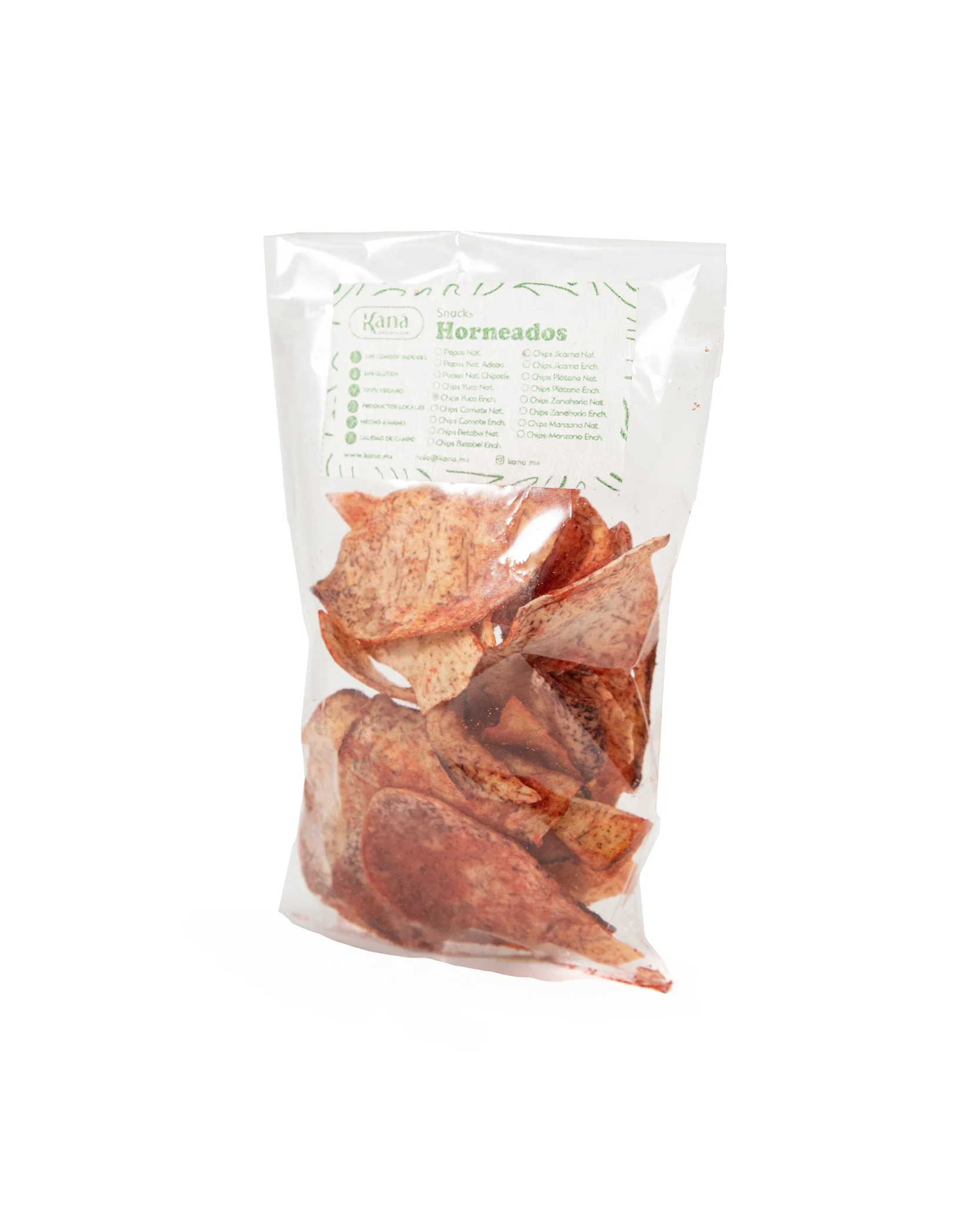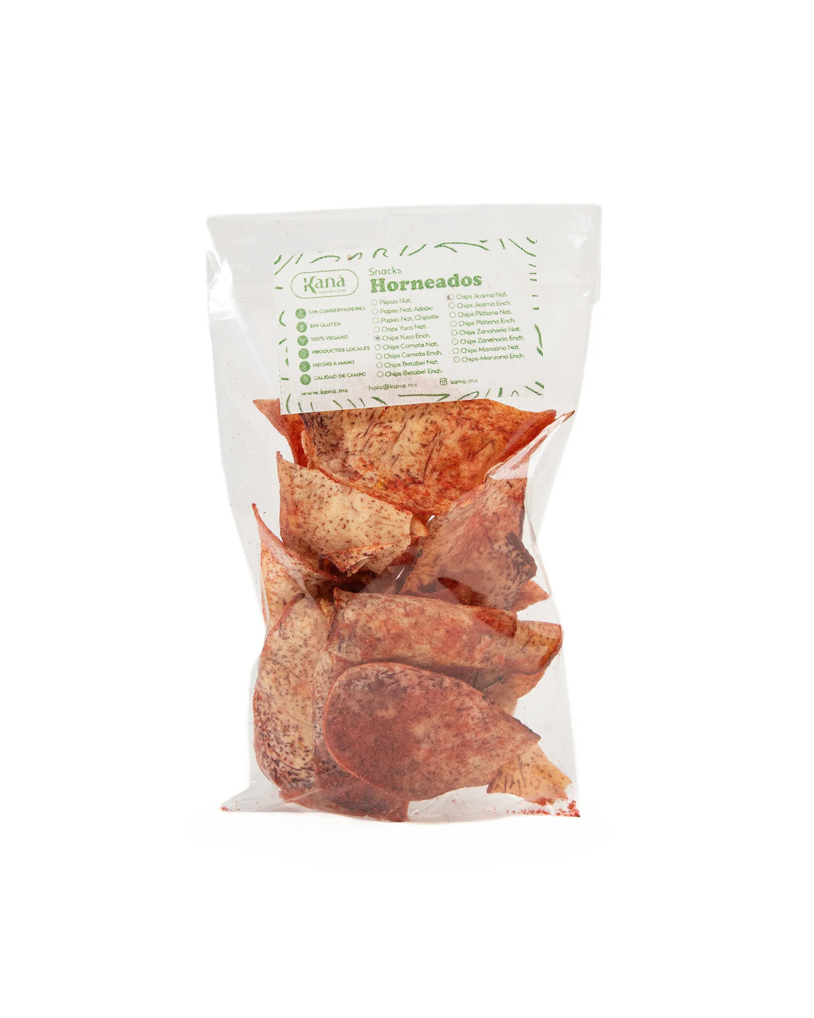 Dale un giro emocionante a tus snacks con nuestras chips de yuca enchilada. El sabor natural y la consistencia firme de la yuca se fusionan con un audaz y picante toque de chile, creando una experiencia gustativa que te atrapará. Un snack con personalidad y un toque especial para despertar tus sentidos.