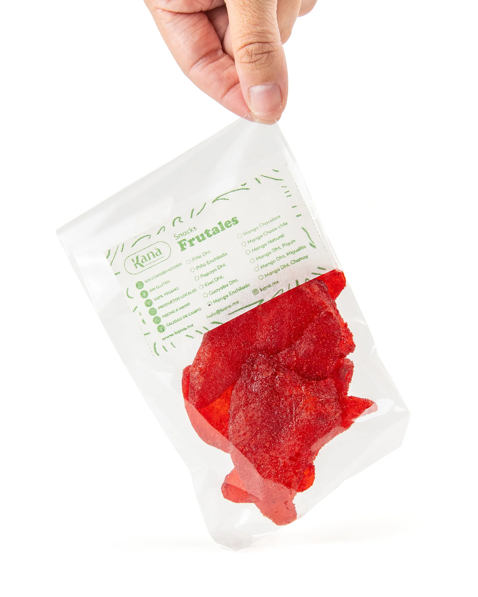 La dulzura natural del mango deshidratado se realza con el toque cítrico y ligeramente picante del Tajín. Una combinación refrescante y equilibrada que potencia el sabor tropical del mango, ideal para quienes buscan un snack con un toque de chispa.